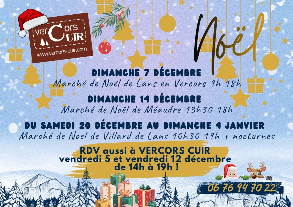 décembre 2025 : vendredi 5 et vendredi 12 de 14h à 19h puis RDV sur les salons et marchés de Noël jusqu’à début janvier 2026 !
